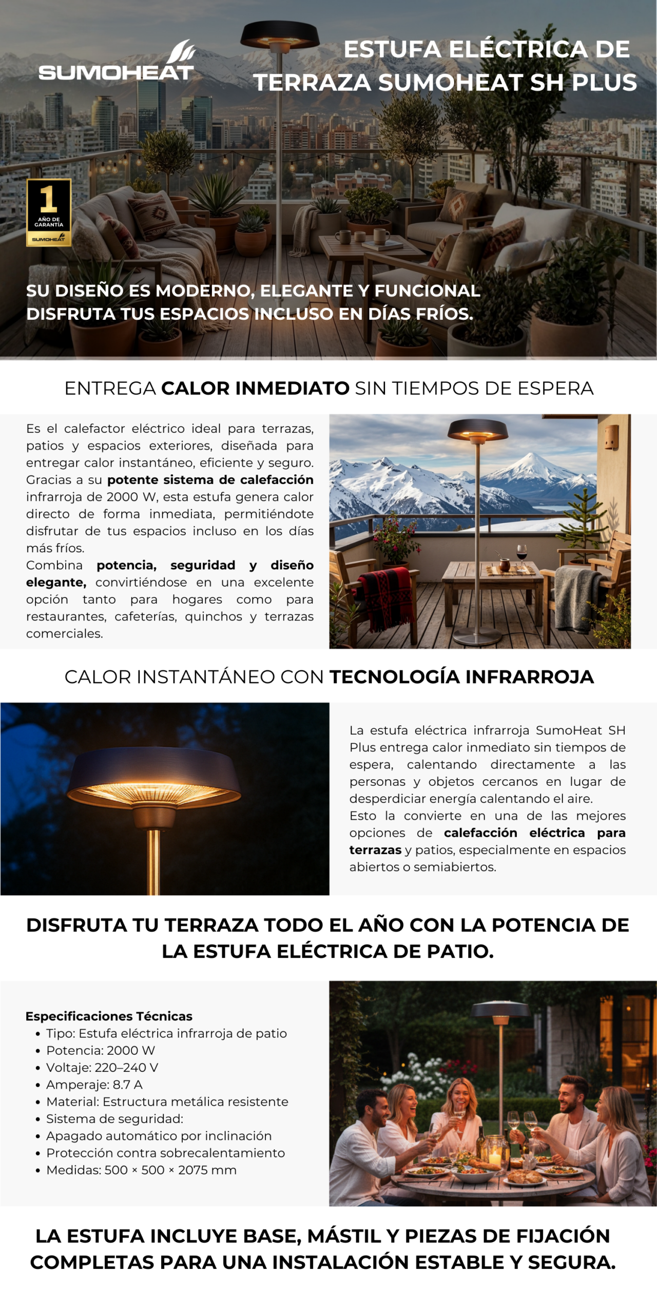 Estufa Eléctrica de Patio SumoHeat SH Plus – Calefactor Infrarrojo para Terrazas y Exteriores